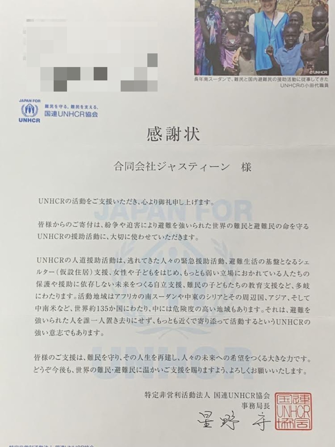 私たちは国連難民高等弁務官事務所(UNHCR)の活動に賛同し、寄付という形で支援を行っています。